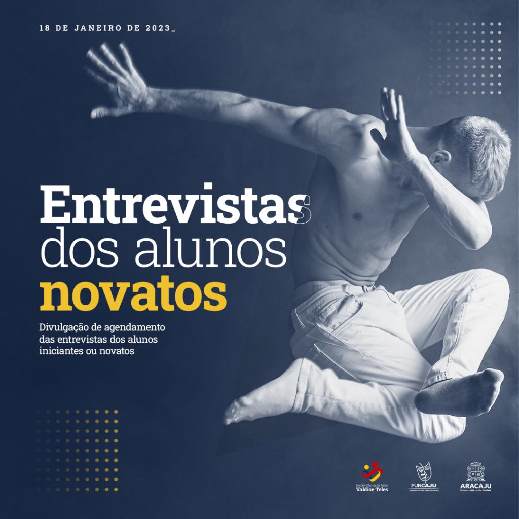 A Fundação Cultural Cidade de Aracaju (Funcaju) divulgou nesta quinta-feira, 19, a lista com o agendamento de entrevistas para os alunos novatos que se inscreveram no processo seletivo 2023.1, da Escola Oficina de Artes Valdice Teles (EOAVT). As entrevistas de seleção serão realizadas entre os dias 1º e 3 de fevereiro, das 8h às 19h.