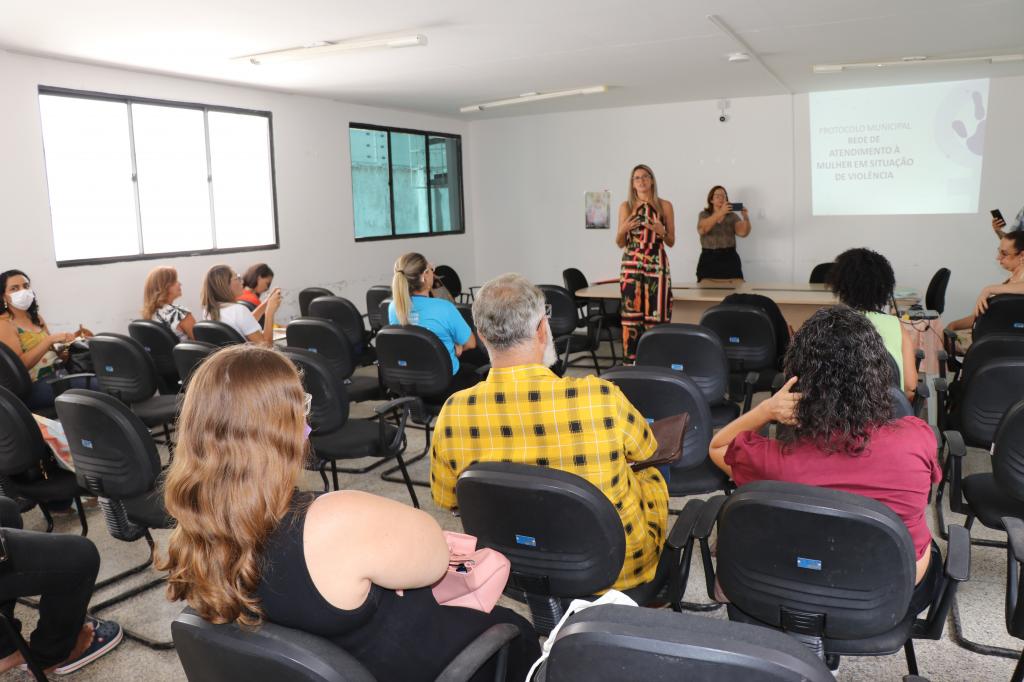 A coordenadora de Políticas para Mulheres da DDH, Edlaine Sena, apresentou o Protocolo Municipal da Rede de Atendimento à Mulher em Situação de Violência, que também engloba mulheres trans.