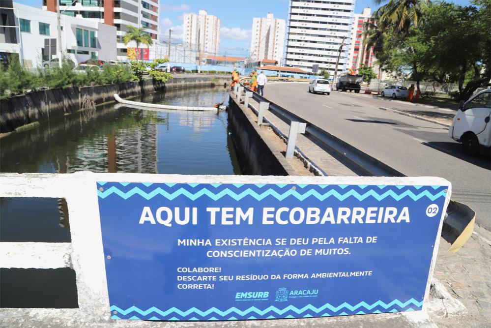 Outra inovação na área de limpeza urbana, em Aracaju, as ecobarreiras são estruturas mais recentes e instaladas especificamente em canais. Elas são fixadas na parte interna dos canais, aproveita as correntes naturais para reter o lixo, facilitando a sua coleta, funcionando, justamente, como uma barreira para impedir que o lixo descartado irregularmente vá para os rios e mares.
