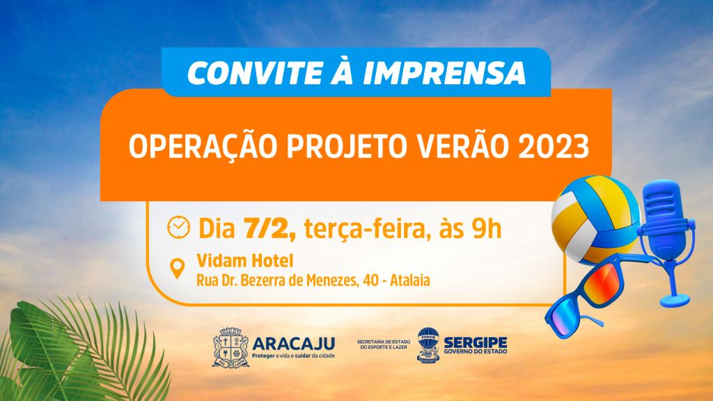 A Prefeitura de Aracaju e o Governo de Sergipe convidam a imprensa para a apresentação da Operação Projeto Verão 2023, que será realizada nesta terça-feira, dia 7, às 9h, no Vidam Hotel, no bairro Atalaia.