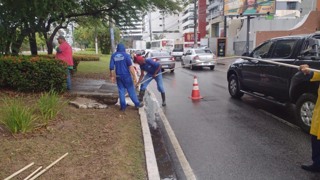 A Empresa Municipal de Serviços Urbanos (Emsurb) atuou com a limpeza de canais e de bocas de lobo, em localidades como Santa Maria e Leite Neto.