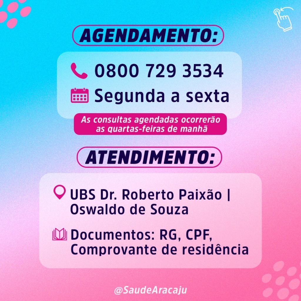 Os interessados deverão realizar o agendamento de segunda a sexta-feira em horário comercial, pelo telefone 0800 729 3534 e selecionar a opção 8, que é destinada ao Serviço de Acolhimento à Saúde Trans de Aracaju. No momento da ligação, o paciente poderá informar em qual das duas unidades deseja receber o atendimento.