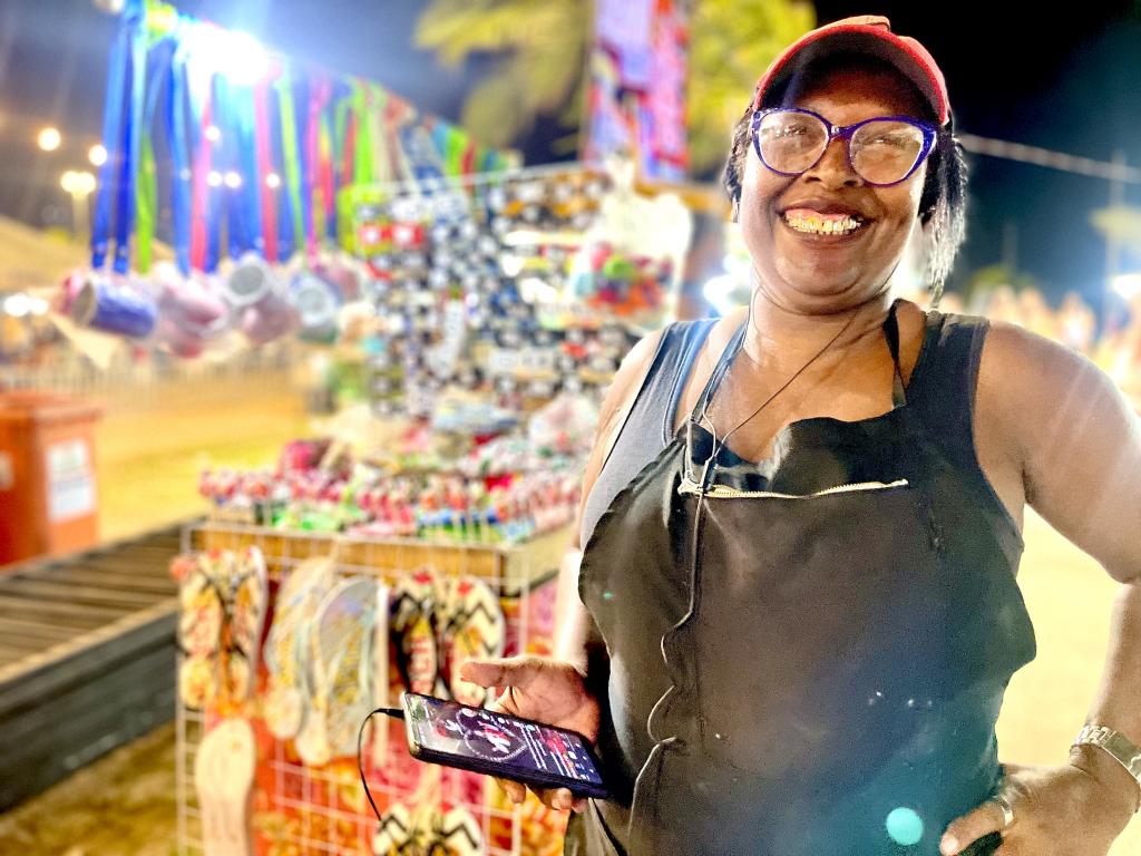 Tendo chegado ao local antes de o evento começar, ela garantiu boas vendas já no primeiro dia, pois disponibiliza um sem-número de produtos: de balas diversas a capas de chuva, passando por prendedores de cabelo e copos. “Também estou com boas expectativas. Aqui, eu vendo de tudo. Em nome de Jesus, vou vender muito nessa festa”, acredita.