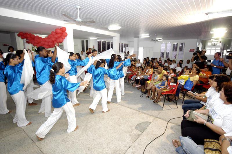 A apresentação do grupo de dança “Arte Dançante”, da Escola Municipal Olga Benário, animou a segunda etapa da Campanha de Vacinação Contra a Poliomielite. O evento aconteceu sábado, dia 26, na Unidade de Saúde da Família Dr. José Machado de Souza, localizada no bairro Santos Dumont. Estiveram presentes a secretária municipal de Saúde Lêda, Lúcia Couto Vasconcelos, a coordenadora de Imunização da Secretaria Estadual de Saúde, Sândala Teles, supervisores da rede de Atenção Básica, agentes de saúde e a imprensa. Desta vez, a Secretaria Municipal de Saúde (SMS) disponibilizou 106 postos fixos de vacinação, além de dez postos volantes. A meta este ano é imunizar cerca de 45 mil crianças em todo o município. Foram vacinadas as crianças com idade entre zero e quatro anos. Inclusive aquelas que, por algum motivo, não se vacinaram na primeira etapa, ocorrida no mês de junho. Somente crianças que apresentem sintomas de febre alta, diarréia severa e vômito em grande intensidade não foram vacinadas. Para essa etapa, a SMS destinou 46 mil doses da vacina e foram mobilizados cerca de 650 profissionais da saúde municipal. “Há 17 anos, o Brasil não tem nenhum caso de paralisia infantil. Mas, no mundo ainda encontramos quatro países com a epidemia de pólio, por isso é necessário que as mães levem seus filhos para se vacinar”, informou Lêda Lúcia Couto Vasconcelos. A dona de casa Maria José Silveira elogiou a campanha realizada pela SMS. Ela levou o filho de dois anos para receber a vacina. “A prefeitura vem investindo cada vez mais na saúde da população aracajuana, não somente no tratamento de doenças, como também na prevenção”, disse. De acordo com a gerente de Imunização da SMS, Débora Moura, o órgão vem garantindo todas as metas do Ministério da Saúde. Em 2005, por exemplo, a cobertura foi de 95% na primeira etapa da campanha, e 97%, na segunda etapa. Unidade José Machado de Souza Entregue à comunidade do bairro Santos Dumont há pouco mais de seis meses, a nova Unidade de Saúde da Família José Machado de Souza teve seu espaço físico original ampliado, reformado e melhorado. A unidade tornou-se a mais espaçosa da 4ª Região de Saúde, área correspondente à zona Norte de Aracaju. Sua capacidade de acolher foi ampliada, proporcionando à comunidade um ambiente humanizado com estruturas modernas. A Unidade conta com os critérios estabelecidos pela Coordenação de Logística da SMS no que se refere à padronização e ambiência das unidades de saúde, que compõem o projeto Saúde Todo Dia. A USF conta com sala de espera ampla, banheiros adaptados para portadores de necessidades especiais, sala de vacina, sala de observação equipada para situações de urgência, sala de coleta, sala de nebulização (aerosol), ala de procedimentos e de atendimento individual, espaço para reunião e sistema de esterilização de acordo com as normas da vigilância sanitária.