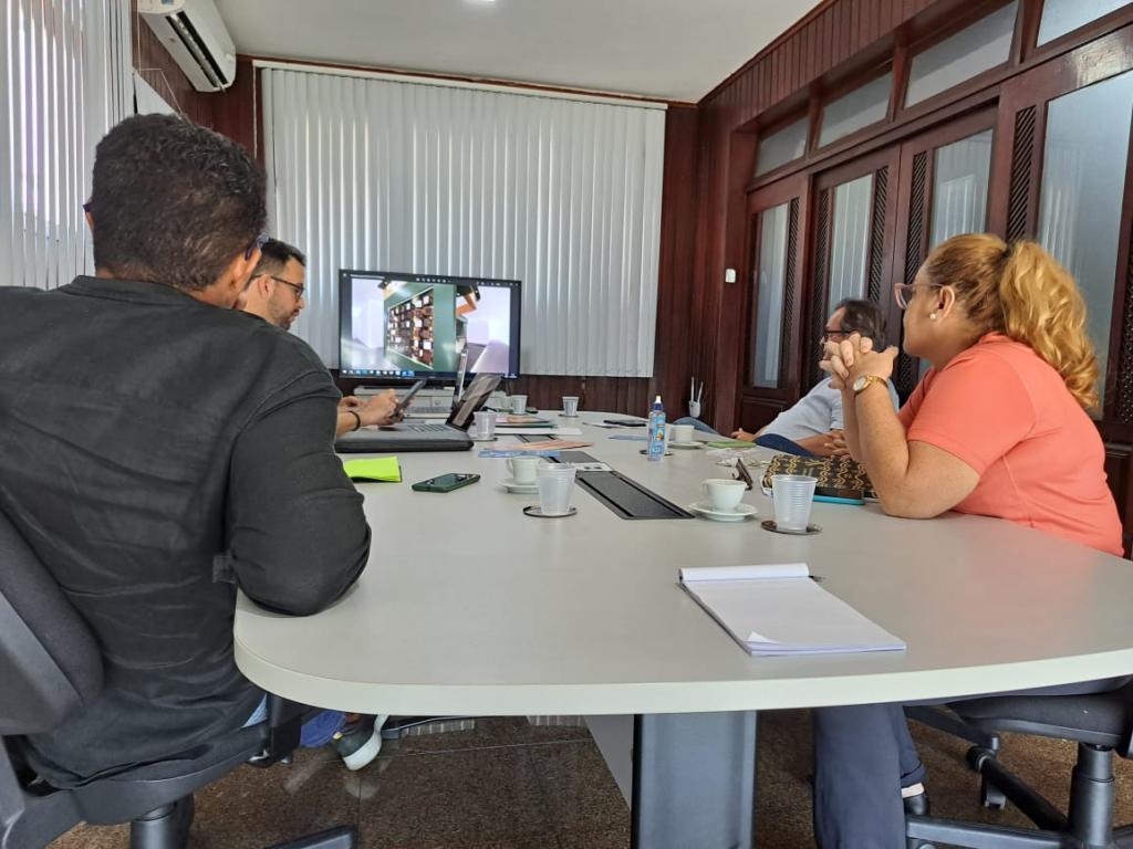 Na manhã desta segunda-feira, 13, o secretário municipal do Turismo, Jorge Fraga, acompanhado do assessor técnico do Gabinete, Gilson dos Santos, coordenou reunião de trabalho com o diretor de Promoção, Marketing e Eventos da Secretaria de Estado do Turismo (Setur), Gustavo Paixão, além das técnicas Rúbia Hora, Veruska Chaves e o arquiteto Barroso Melo.