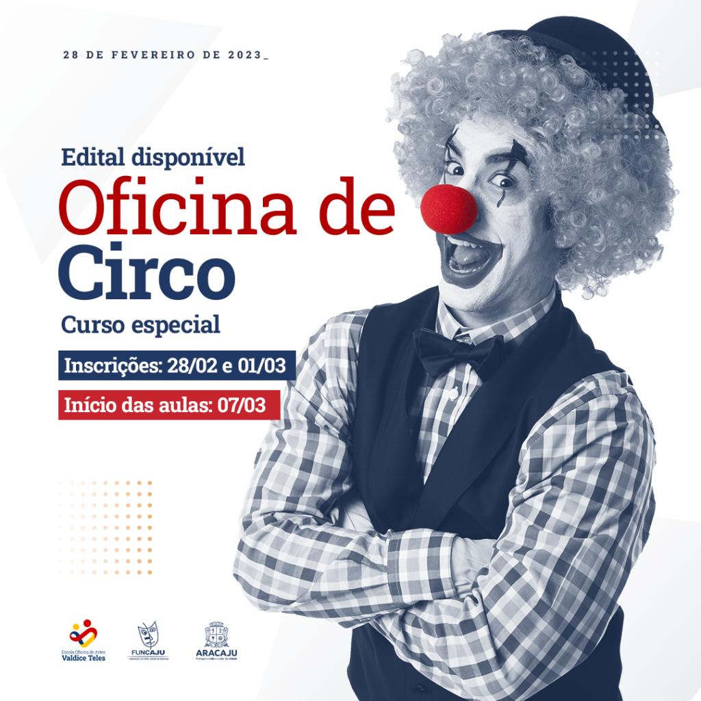 A Prefeitura de Aracaju, por meio da Fundação Cultural Cidade de Aracaju (Funcaju), disponibiliza nesta terça-feira, 28, novo edital de Oficina de Circo para inscrição de interessados. Realizada pela Escola Oficina de Artes Valdice Teles (EOAVT), a oficina terá três meses de duração e as inscrições devem ser feitas até esta quarta-feira, dia 1º.
