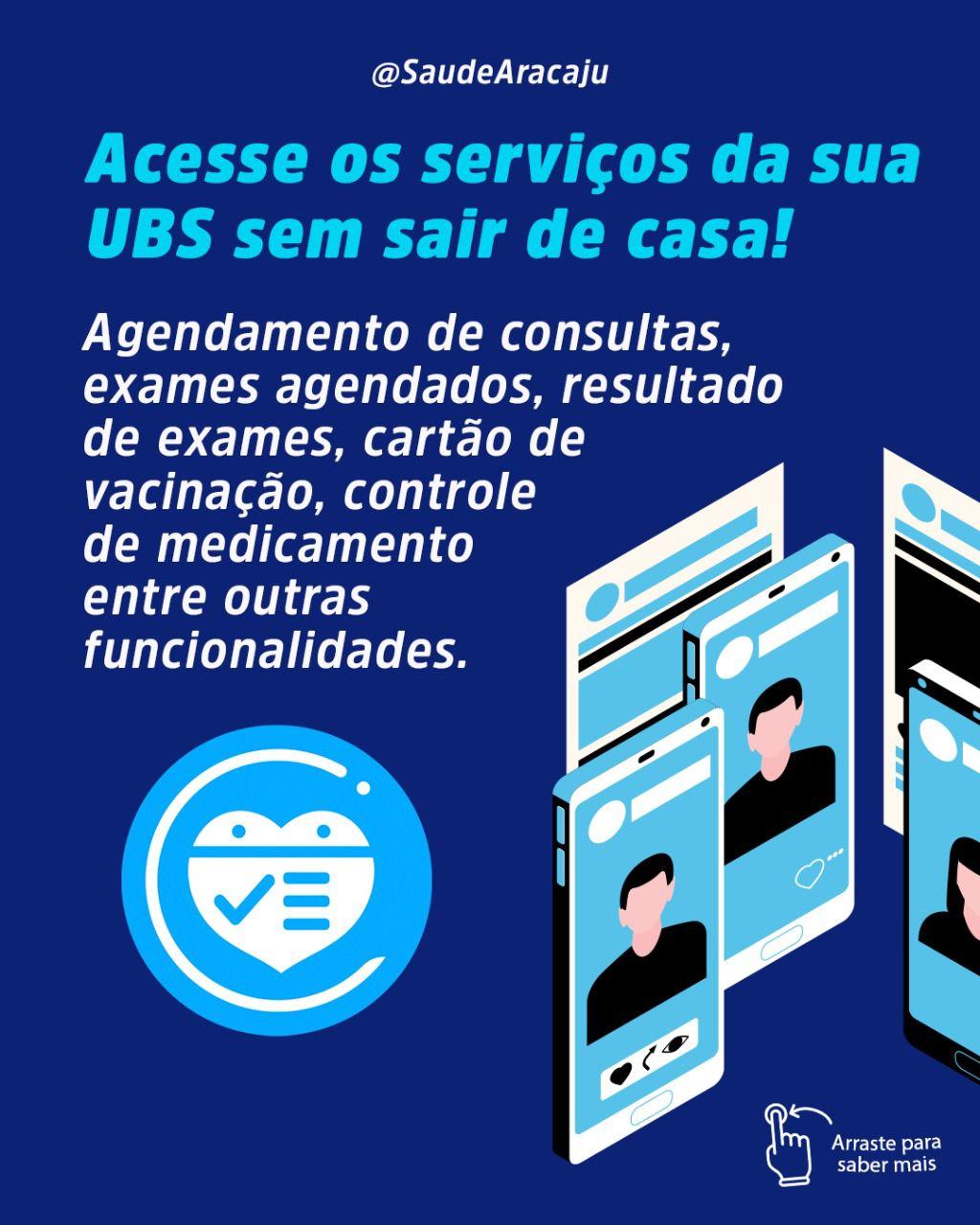 Com o objetivo de facilitar o acesso dos usuários aos serviços do Sistema Único de Saúde (SUS) na capital sergipana, a Prefeitura de Aracaju, por meio da Secretaria Municipal da Saúde (SMS), disponibiliza o Portal e aplicativo da Saúde, plataforma que facilita o agendamento de consultas, acesso ao cartão de vacinação, resultado de exames, controle de medicamento entre outras funcionalidades.