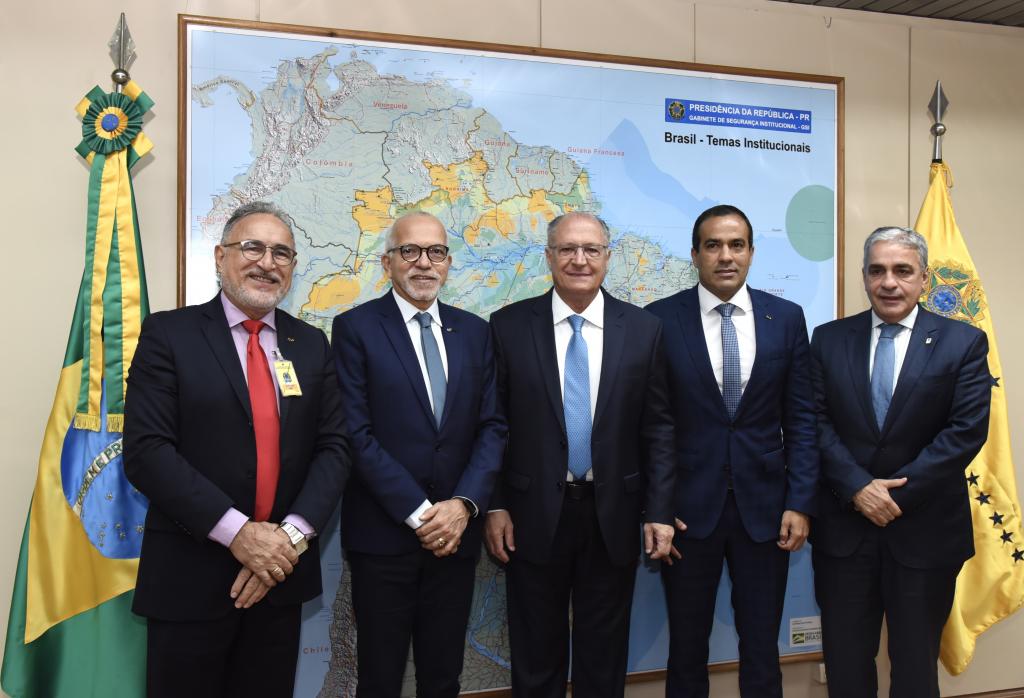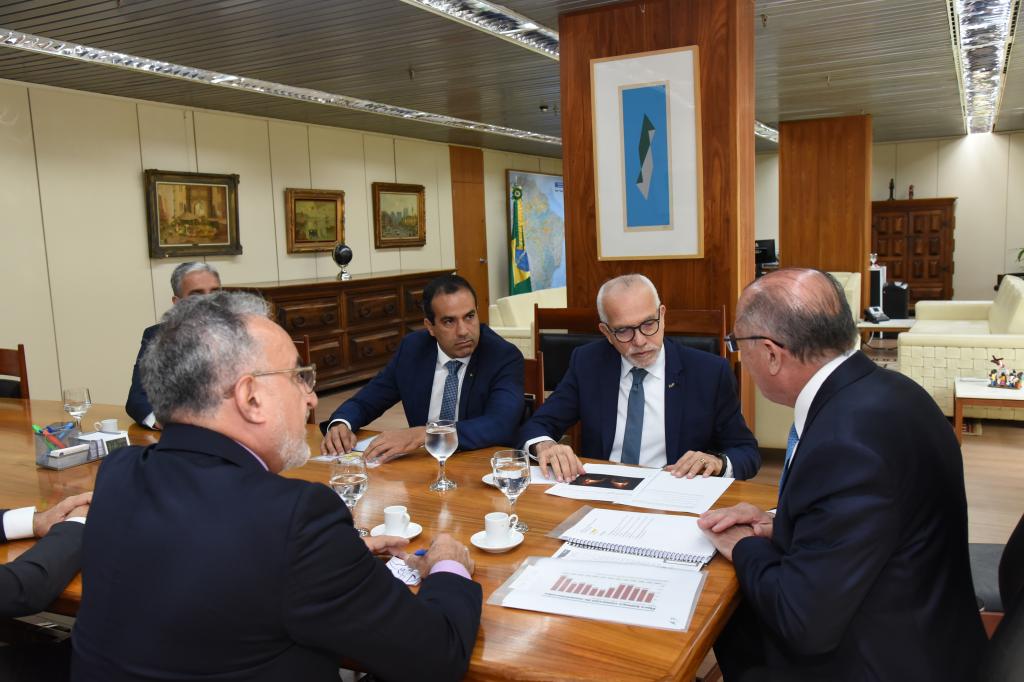 O prefeito de Aracaju e presidente da Frente Nacional de Prefeitos (FNP), Edvaldo Nogueira, foi recebido, na manhã desta quarta-feira, 8, pelo vice-presidente da República, Geraldo Alckmin, na capital federal. Durante a audiência, que contou com a presença da comitiva de prefeitos da entidade, Edvaldo reforçou a importância do apoio de Alckmin para a instituição do Conselho da Federação, instância colegiada para manutenção de um diálogo permanente entre os governos federal e municipais.