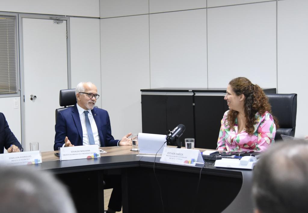 Já na reunião com a ministra de Gestão Pública e Inovação de Serviços Públicos, Esther Dweck, o presidente da FNP colocou a entidade à disposição para atuar de maneira conjunta com o ministério na articulação de ações que contribuam para a melhoria da qualidade de vida dos brasileiros. O ministério é responsável pelas ações de reforma da máquina pública e pelo fomento à eficiência governamental, incluindo a busca pela digitalização e pela desburocratização do governo.