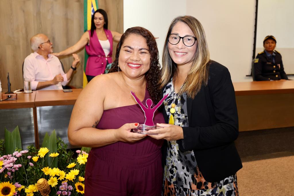 Daniele Rocha foi uma das homenageadas pelo prêmio. Hoje, aos 31 anos e mãe de duas meninas, ela conta, com muita emoção, a sua história, marcada pela superação e pela vontade de viver. Vítima de violência doméstica por muitos anos, ela destaca que, receber o troféu, "é poder lembrar do caminho que percorreu até o seu renascimento". "Hoje sou uma mulher muito feliz e sei o significado de empoderamento feminino. Foi com o apoio que eu tive da rede que pude mudar de vida. Cada equipamento que me assistiu, que me recebeu, foi primordial para o meu renascimento. Hoje sou outra pessoa. Enfrentei o medo, sou livre e muito feliz. E isso só foi possível porque eu encontrei no Cras, Creas e no abrigo Núbia, o impulsionamento de que eu precisava para me reerguer. A Prefeitura foi peça fundamental, juntamente com o apoio de cada assistente social que me acolheu. Sou resultado e prova viva de que é possível dar um basta",comemorou.