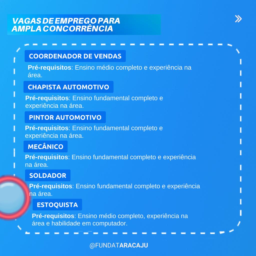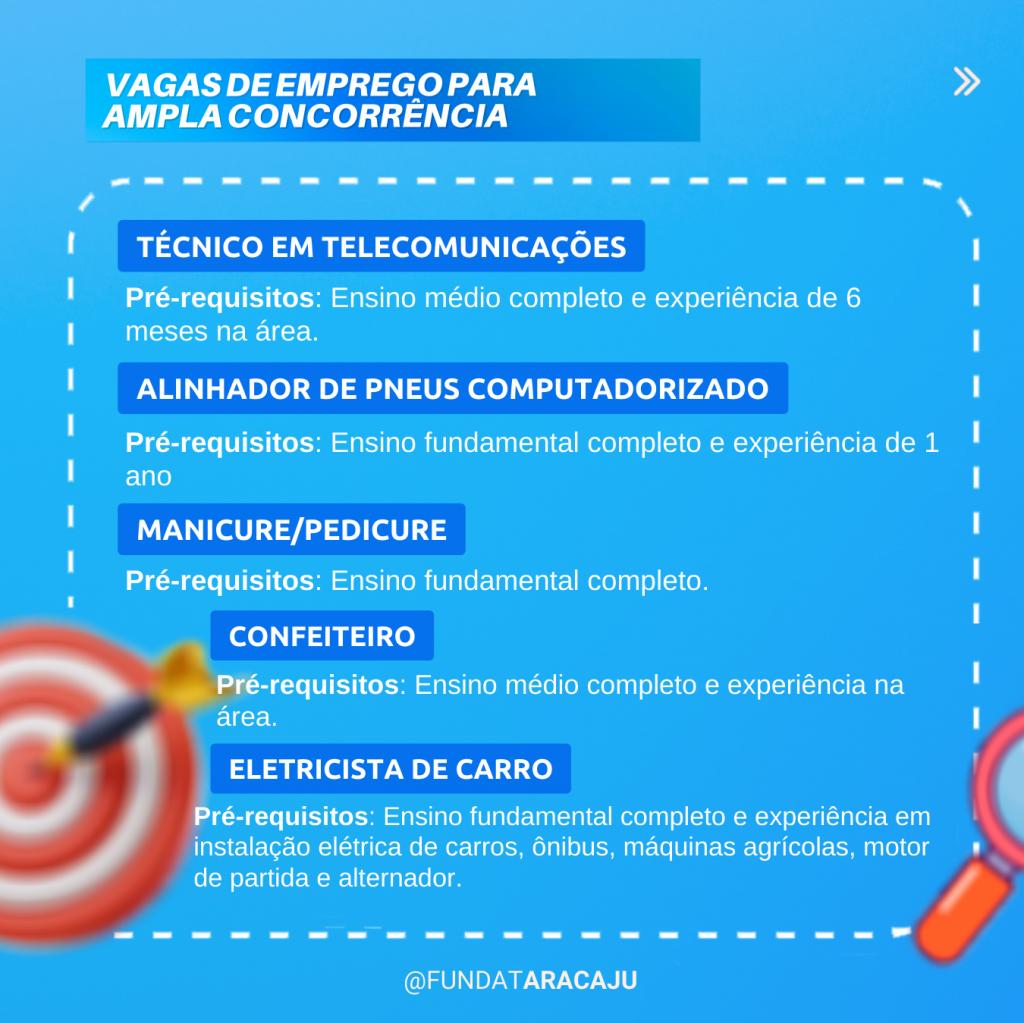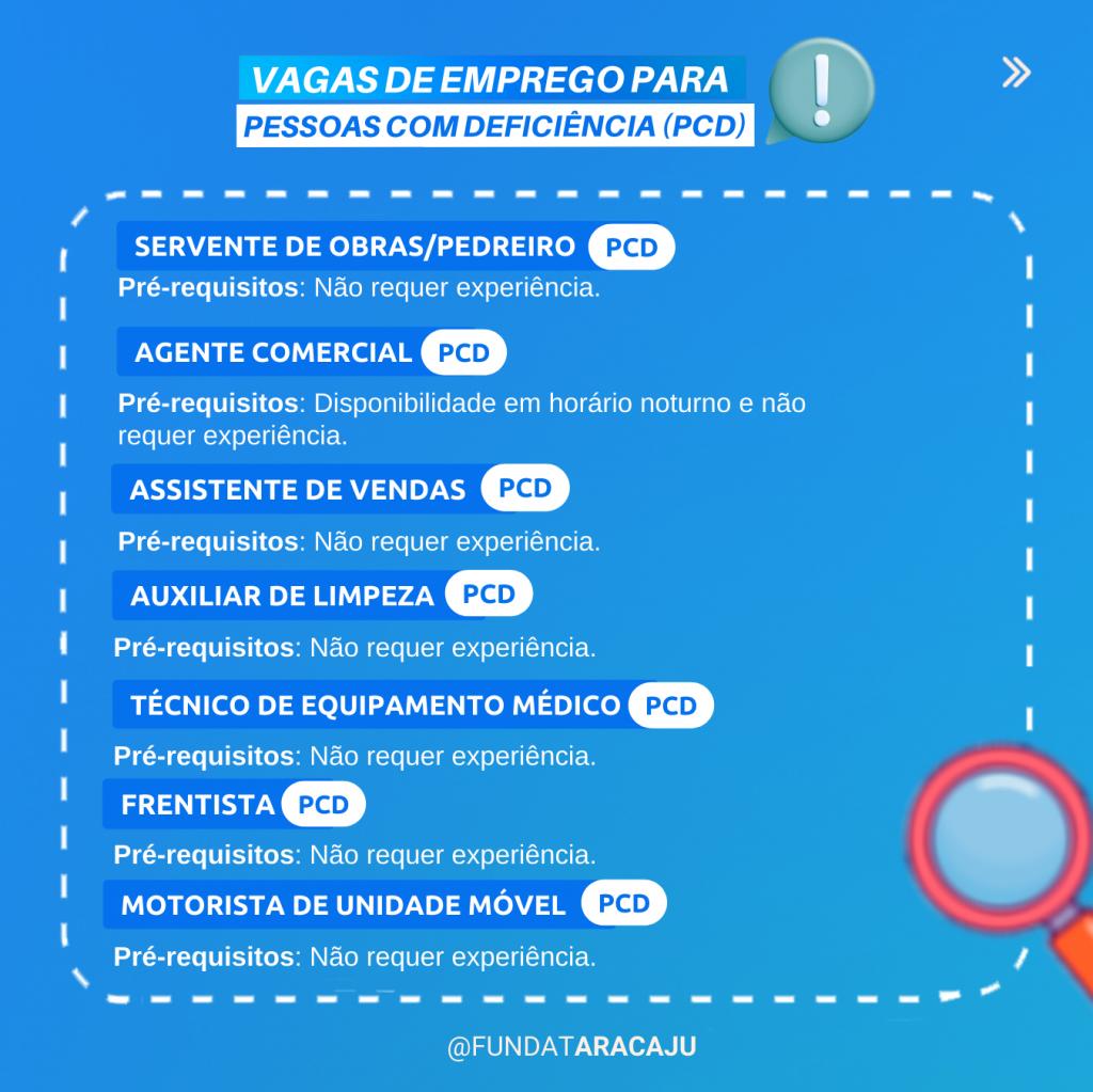 A Prefeitura de Aracaju, por intermédio da Fundação Municipal de Formação para o Trabalho (Fundat), divulga nesta terça-feira, 14, 18 novas vagas de emprego para os cidadãos. As oportunidades são para ampla concorrência e também para pessoas com deficiência (PcD), com ou sem experiência prévia.
