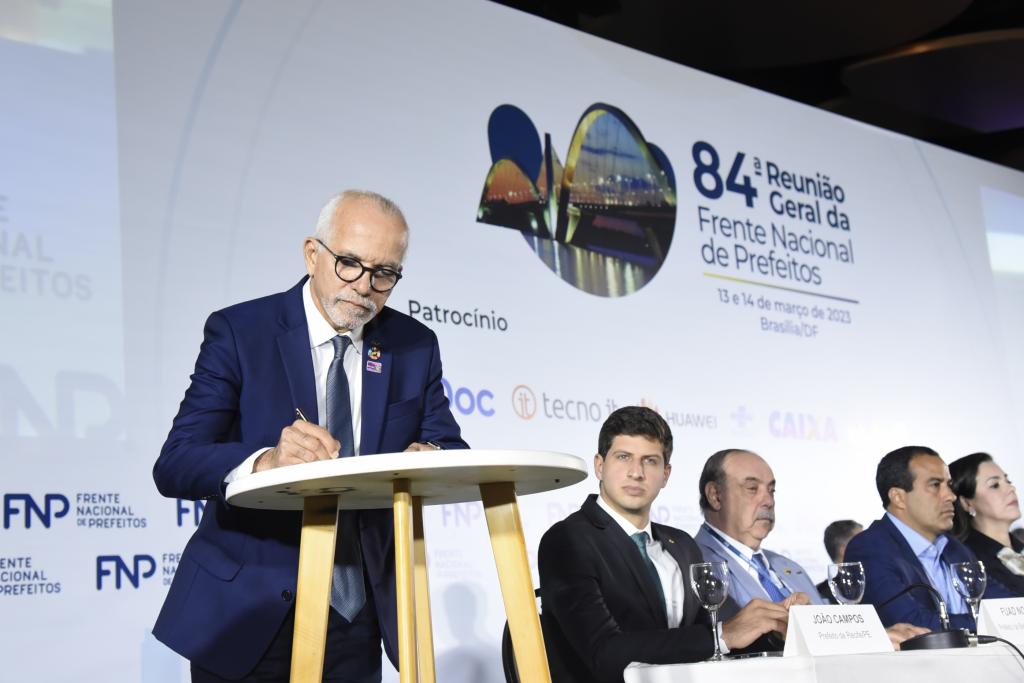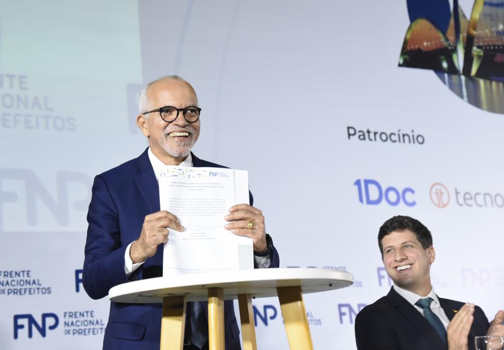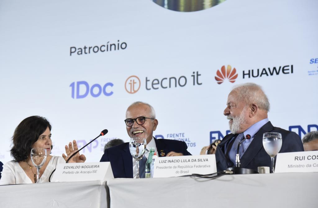 O presidente da República, Luiz Inácio Lula da Silva, empossou, na tarde desta terça-feira, 14, o prefeito Edvaldo Nogueira como presidente reeleito da Frente Nacional de Prefeitos (FNP). A recondução do gestor de Aracaju ao comando da entidade municipalista ocorreu durante a plenária final da 84ª Reunião Geral, que aconteceu nos últimos dois dias em Brasília. Também foram empossados os demais membros da diretoria para o biênio 2023-2025. Durante o ato, o presidente da FNP entregou ao presidente Lula um documento com as principais demandas das cidades brasileiras.