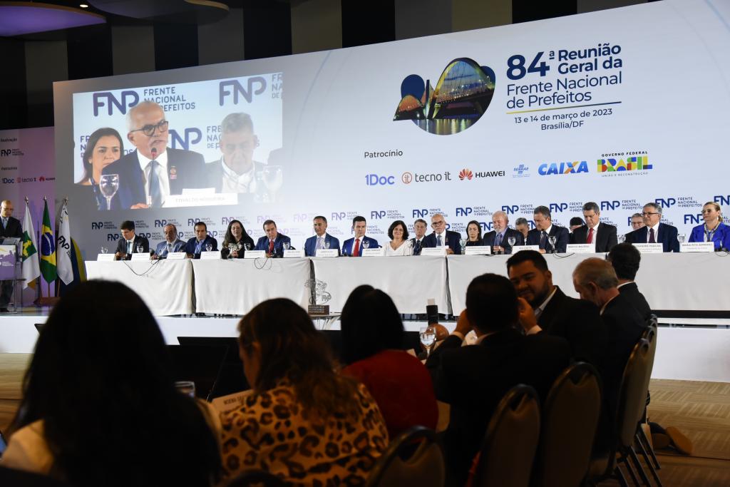 Em seu pronunciamento, o presidente da Frente Nacional também pontuou para o presidente Lula os principais temas que foram debatidos durante os dois dias de Reunião Geral, com a participação ativa de centenas de gestores do país. "Estivemos aqui, discutindo, debatendo os grandes temas da vida política e institucional do nosso país, mas, acima de tudo, discutindo os temas que afligem cotidianamente os gestores das cidades brasileiras. Sempre digo que o cidadão que mora na cidade tem acesso às notícias sobre as situações ocorridas no país e no mundo, mas o que ele quer realmente saber é se a cidade em que vive está funcionando plenamente, com serviços públicos de qualidade. E essa é a tarefa do prefeito, permitir que cada cidadão possa ter o elemento capaz para que ele viva dignidade. Esse foi o norte das nossas discussões", completou.