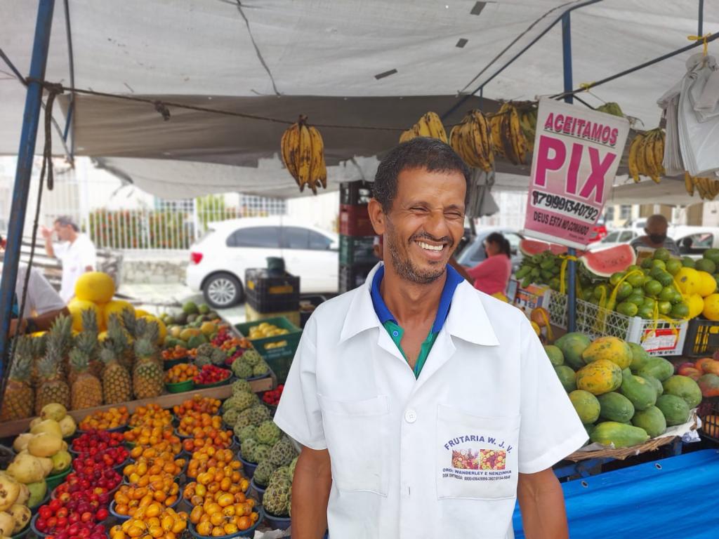 Durante três dias na semana a rotina de Wanderley Silva inicia cedo, muitas vezes bem antes do nascer do sol. Feirante há pelo menos 30 anos, o seu relacionamento com a venda de produtos ao ar livre é uma herança deixada pelos pais, vendedores de mariscos que lhe apresentaram ao trabalho em que, mais tarde, conheceria sua esposa, Josania Silva. Hoje, o casal divide a mesma banca e tem a venda de frutas e verduras como a principal forma de sustento da família, que inclui ainda dois filhos.