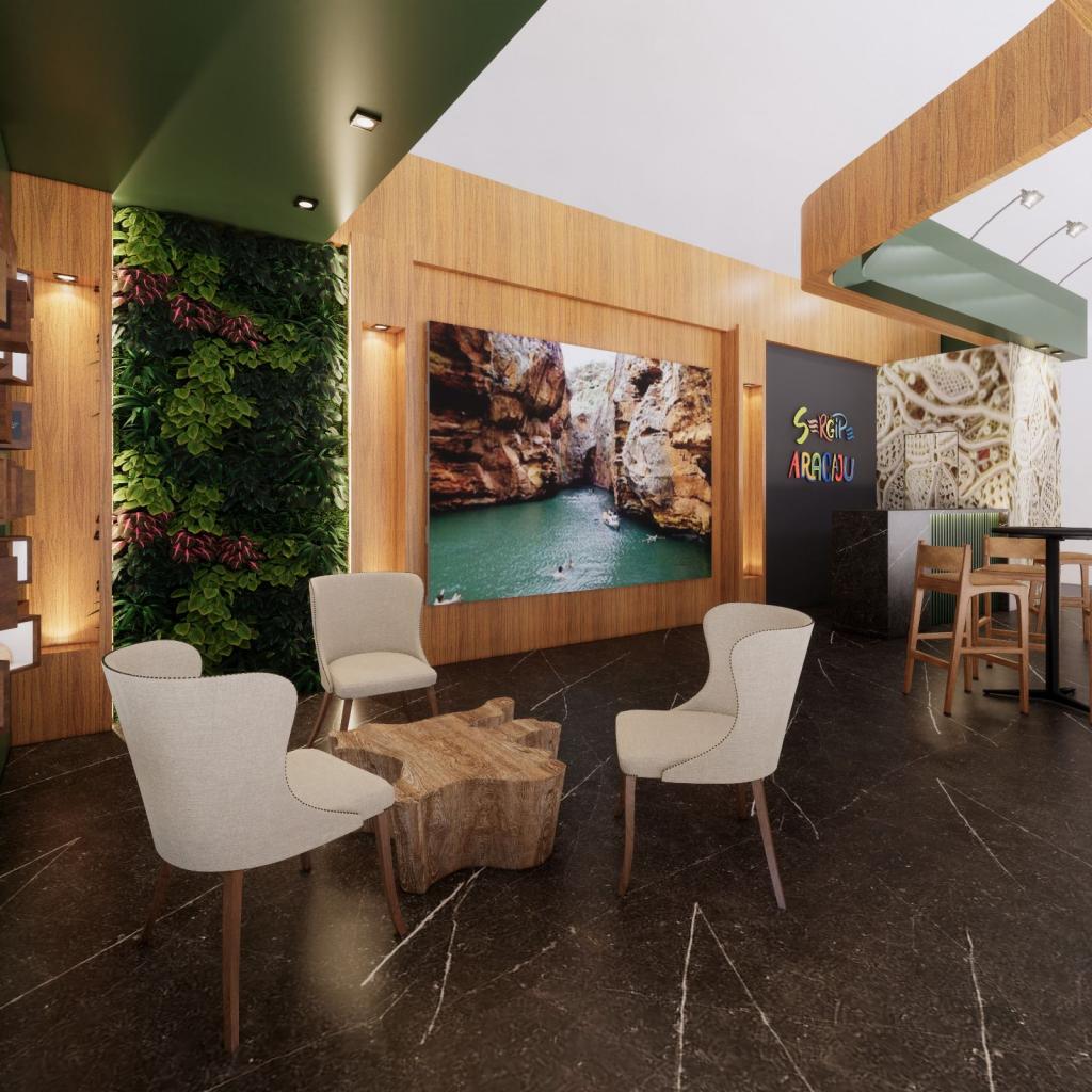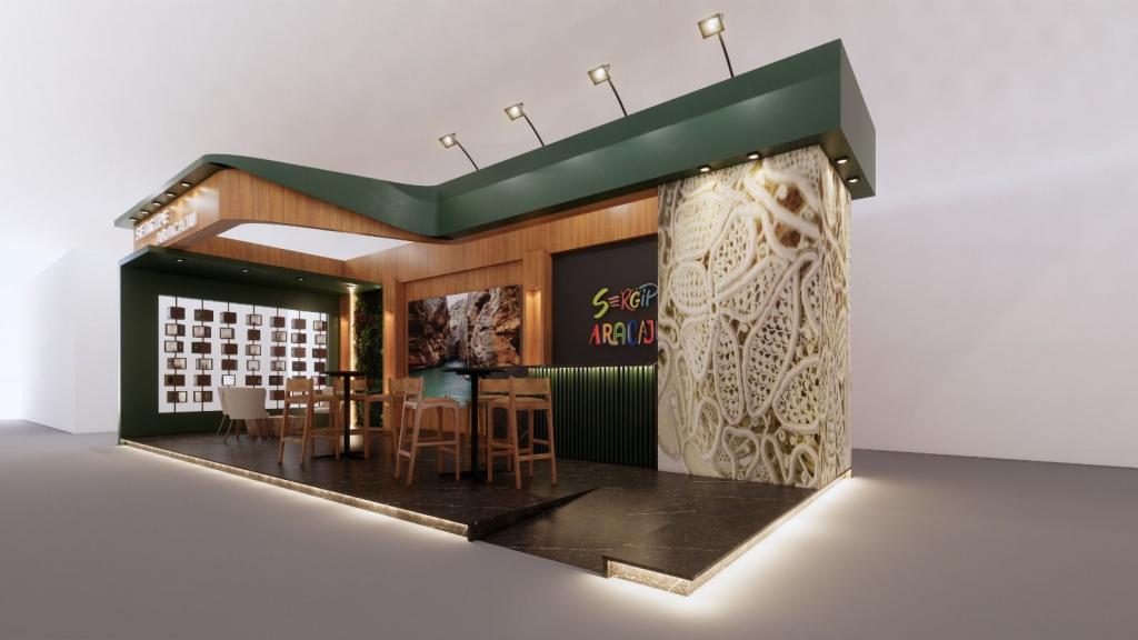 A caravana sergipana compartilhará um bonito e confortável estande com área de 40 metros quadrados contendo lounge, painel lateral com elementos interativos, painéis frontais com imagem da identidade do destino, balcão e estações de atendimento e acolhimento.