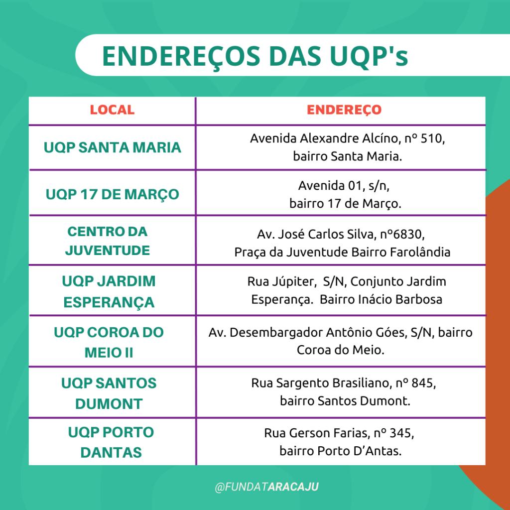 Para se inscrever nos cursos presenciais é necessário comparecer à sede da Fundat, localizada no calçadão da rua João Pessoa, 127, das 7h às 17h, ou em uma das unidades parceiras (listadas nas artes abaixo), portando RG, CPF e comprovante de residência de Aracaju. Caso o participante seja menor de idade, é necessária também a presença dos pais ou responsáveis para efetuar a matrícula.