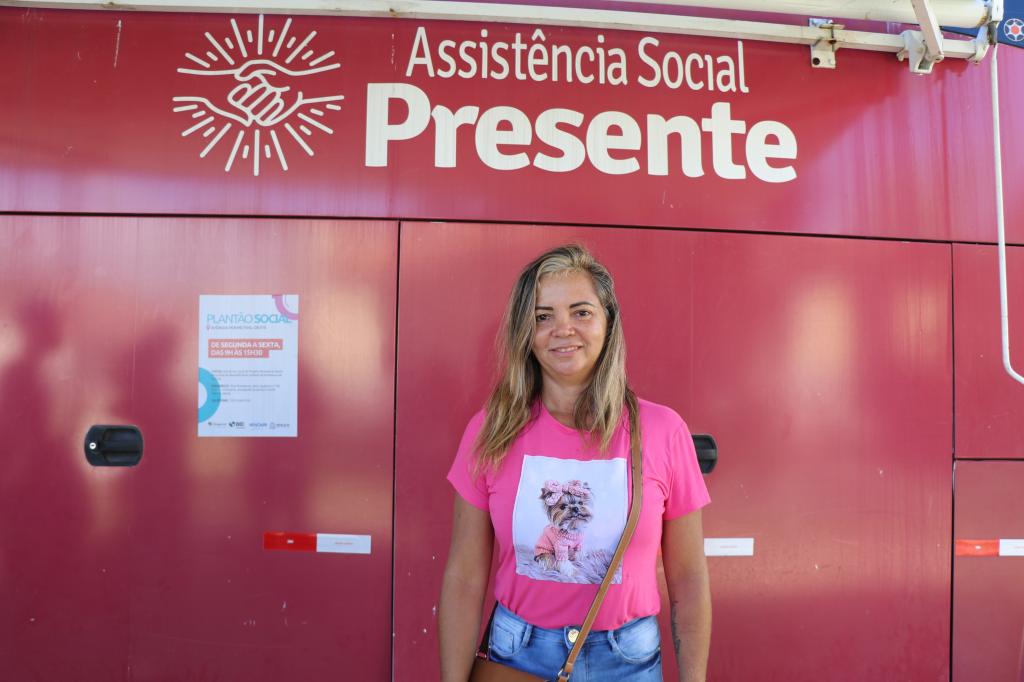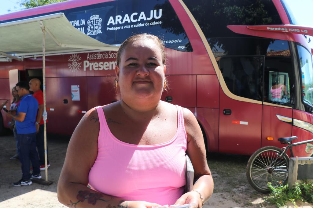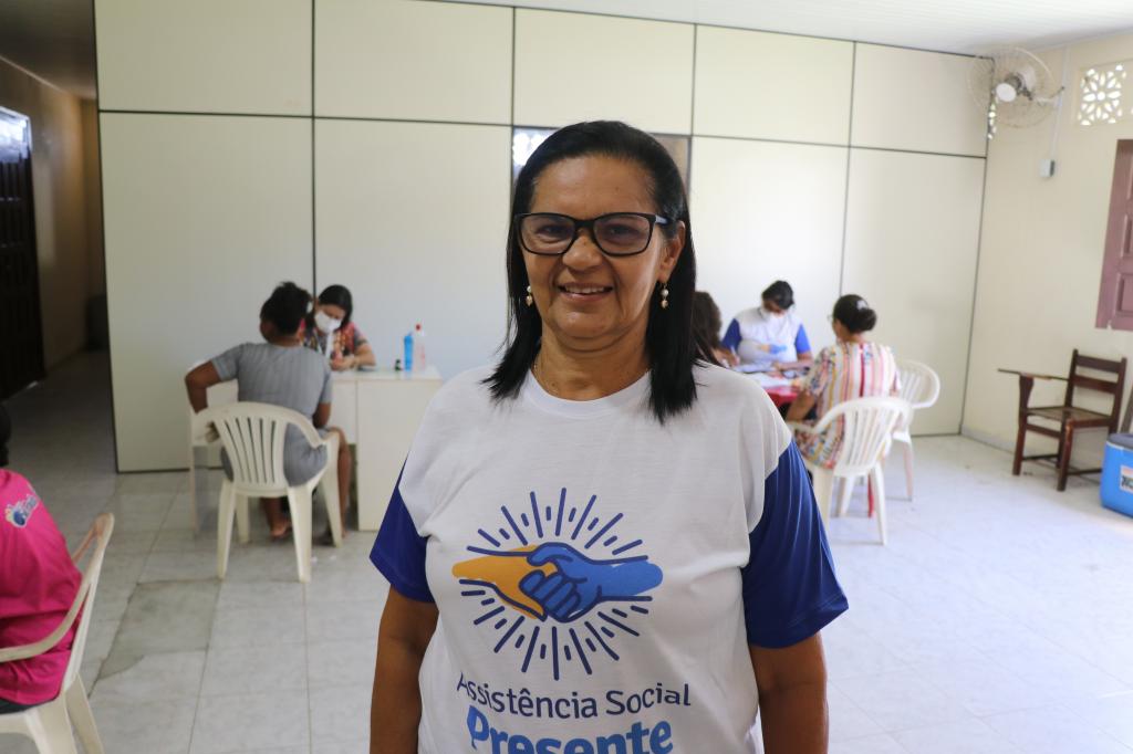 "Eu acho muito importante a Assistência Social vir com esse projeto aqui no bairro, porque nosso Cras fica no [conjunto Augusto Franco, e às vezes não conseguimos nos deslocar até lá ou quando vamos, o local está muito cheio e hoje muitas pessoas tiveram a oportunidade. Eu estou desempregada, espero melhorar minha situação através do cadastro que fiz para os serviços da Assistêncial Social”, conta.