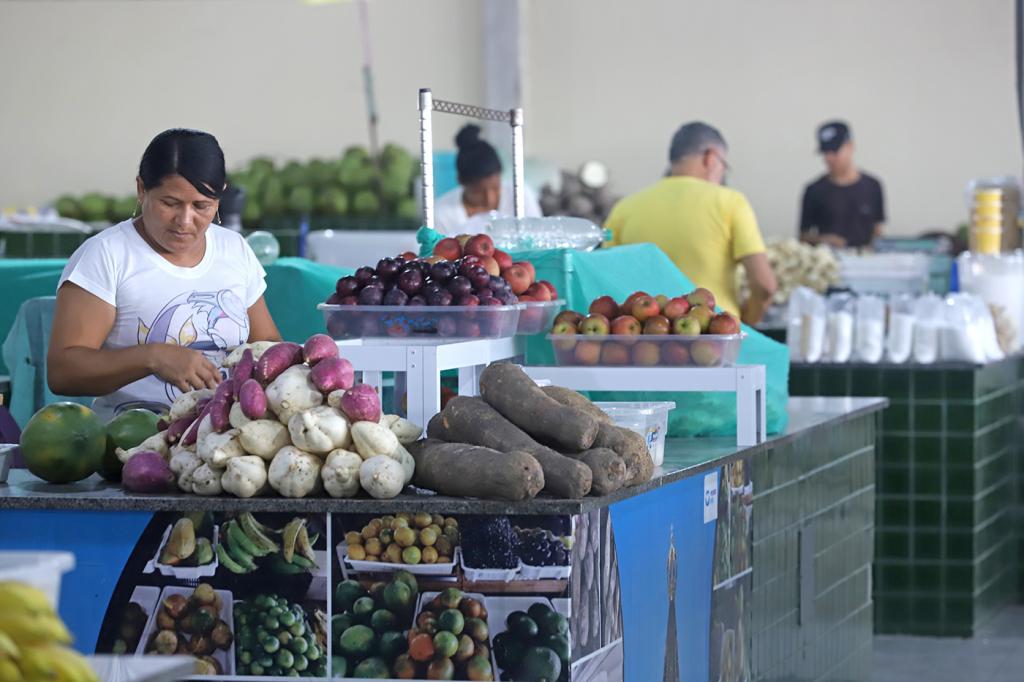 Em outra banca, o feirante Rivaldo Evangelista, de 51 anos, está sempre a postos para comercializar farinha, feijão, arroz, açúcar, entre outros alimentos. Para ele, o mercado tem muitas vantagens. “Aqui, os clientes têm mais opções, encontram mais variedades e com um preço melhor do que nos supermercados”, destaca.