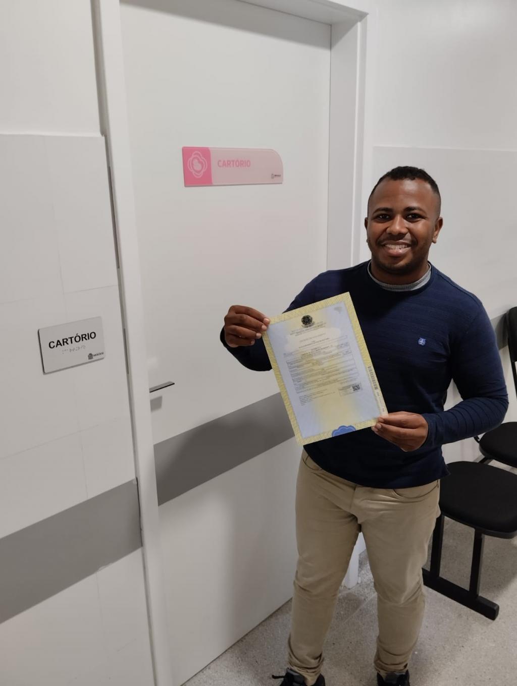 "Chegamos na madrugada e fomos bem acolhidos pelo pessoal da recepção. Recebemos a orientação dos enfermeiros e médicos após a triagem, nos explicando como seria todo o procedimento até o nascimento da criança. Minha esposa recebeu assistência de fisioterapeutas e nutricionistas na preparação para o parto, o que me deixou impactado pelo profissionalismo que encontrei aqui", declara o pai, erguendo em suas mãos a certidão de nascimento do seu filho que terá alta médica nesta sexta-feira, 21.