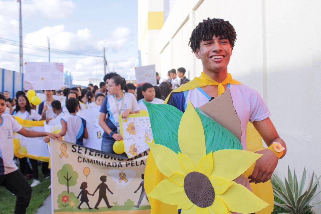 Alunos da EMEF Alcebíades Melo reforçam a mensagem do Setembro Amarelo
